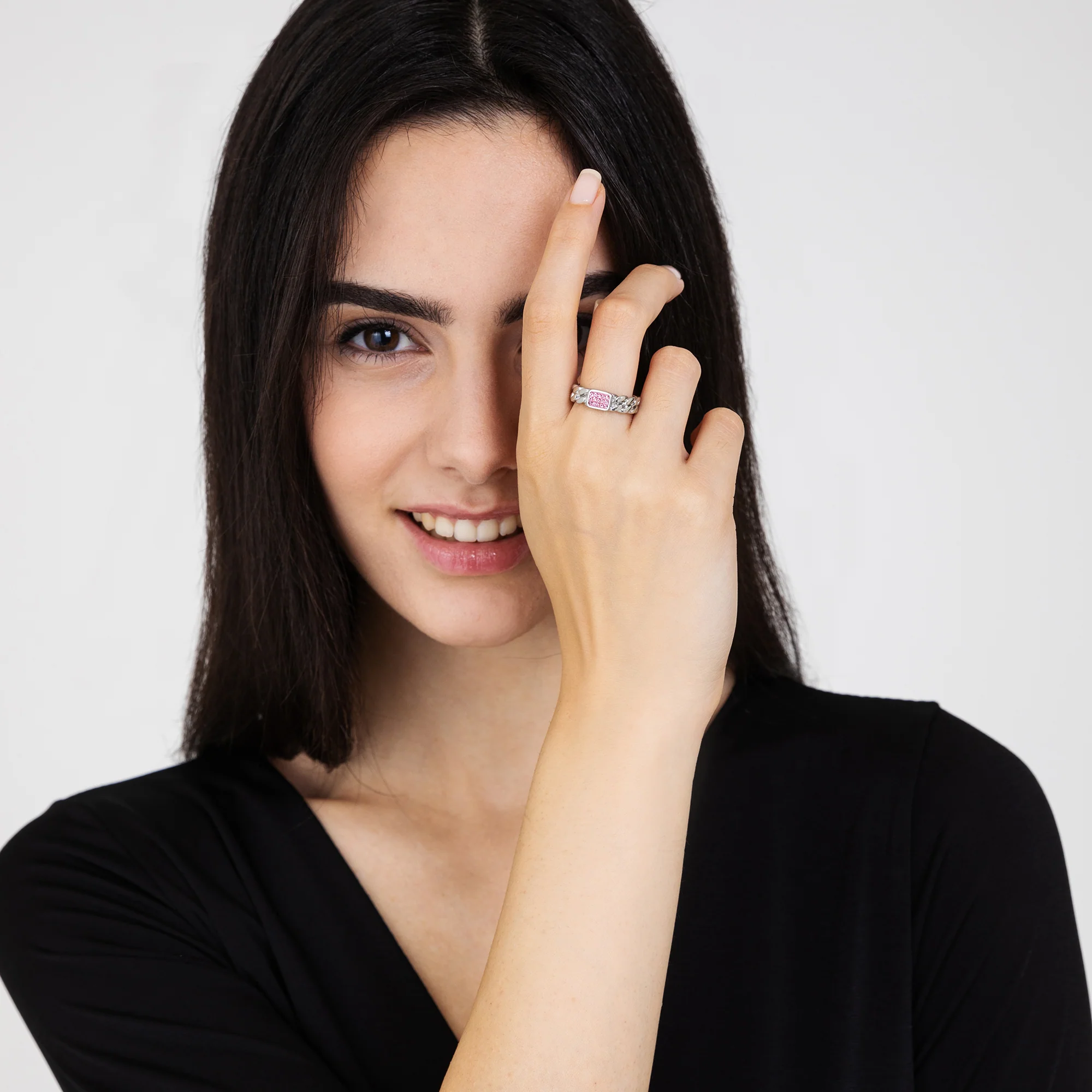 ANELLO IN ACCIAIO CON CRISTALLI FUCSIA