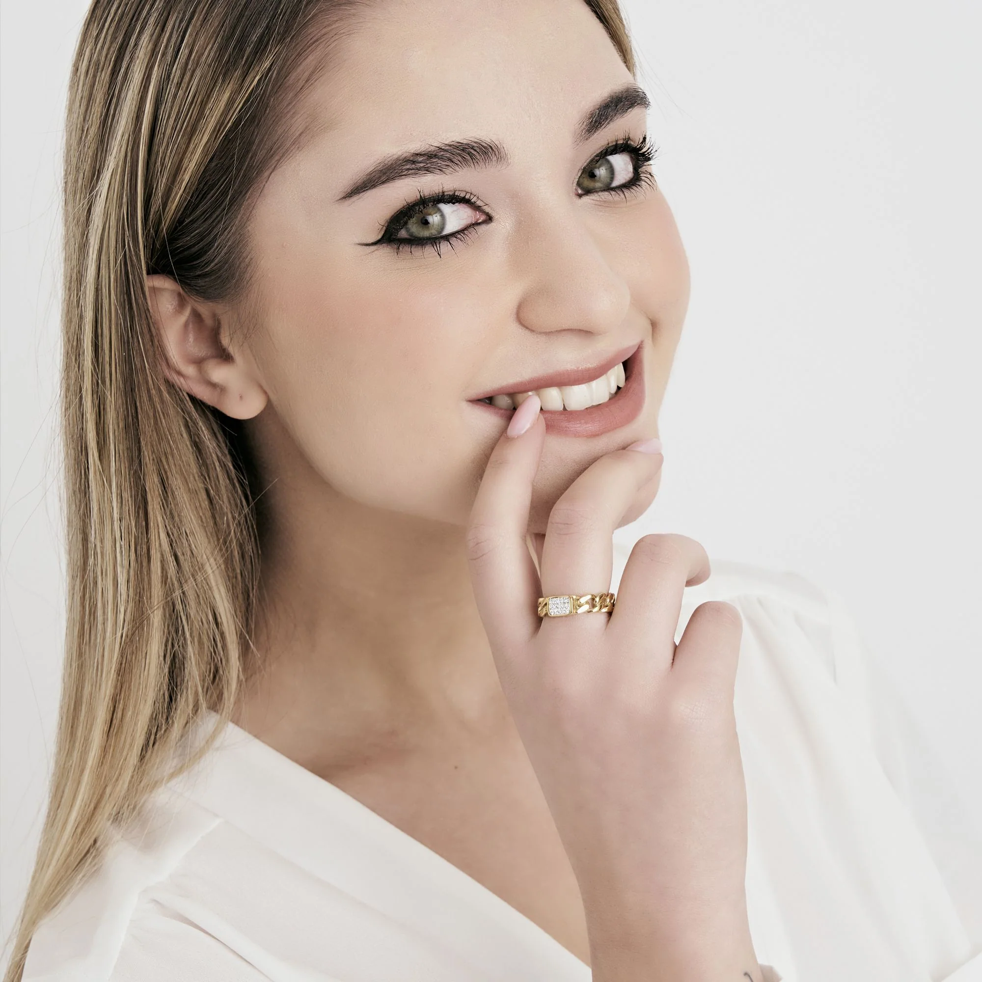 L'anello color oro da donna è un dettaglio elegante e raffinato da indossare ogni giorno. Un gioiello reso unico dai cristalli presenti nella parte geometrica superiore, un dettaglio che regala stile ed eleganza. L'accessorio è perfetto per un regalo importante, la versatilità dell'eleganza ever green permette di indossarlo con ogni look, da quello più semplice a quello più ricercato riscuotendo successo.