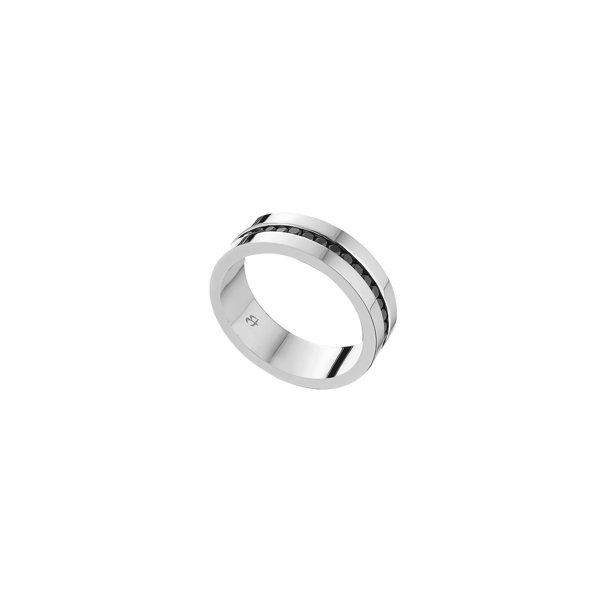 ANELLO UOMO IN ACCIAIO CON CRISTALLI NERI—