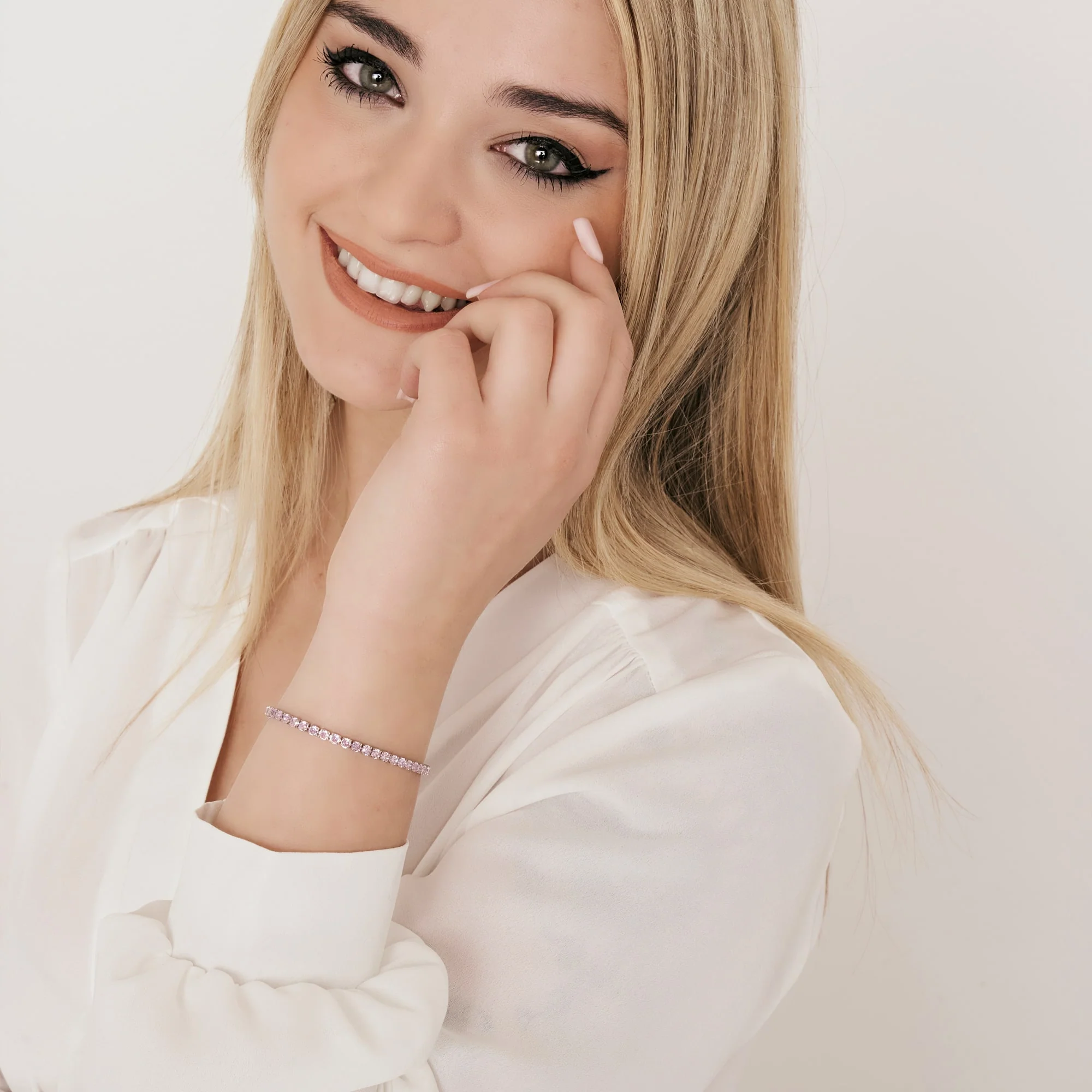 BRACCIALE TENNIS DONNA IN ACCIAIO CON CRISTALLI ROSA