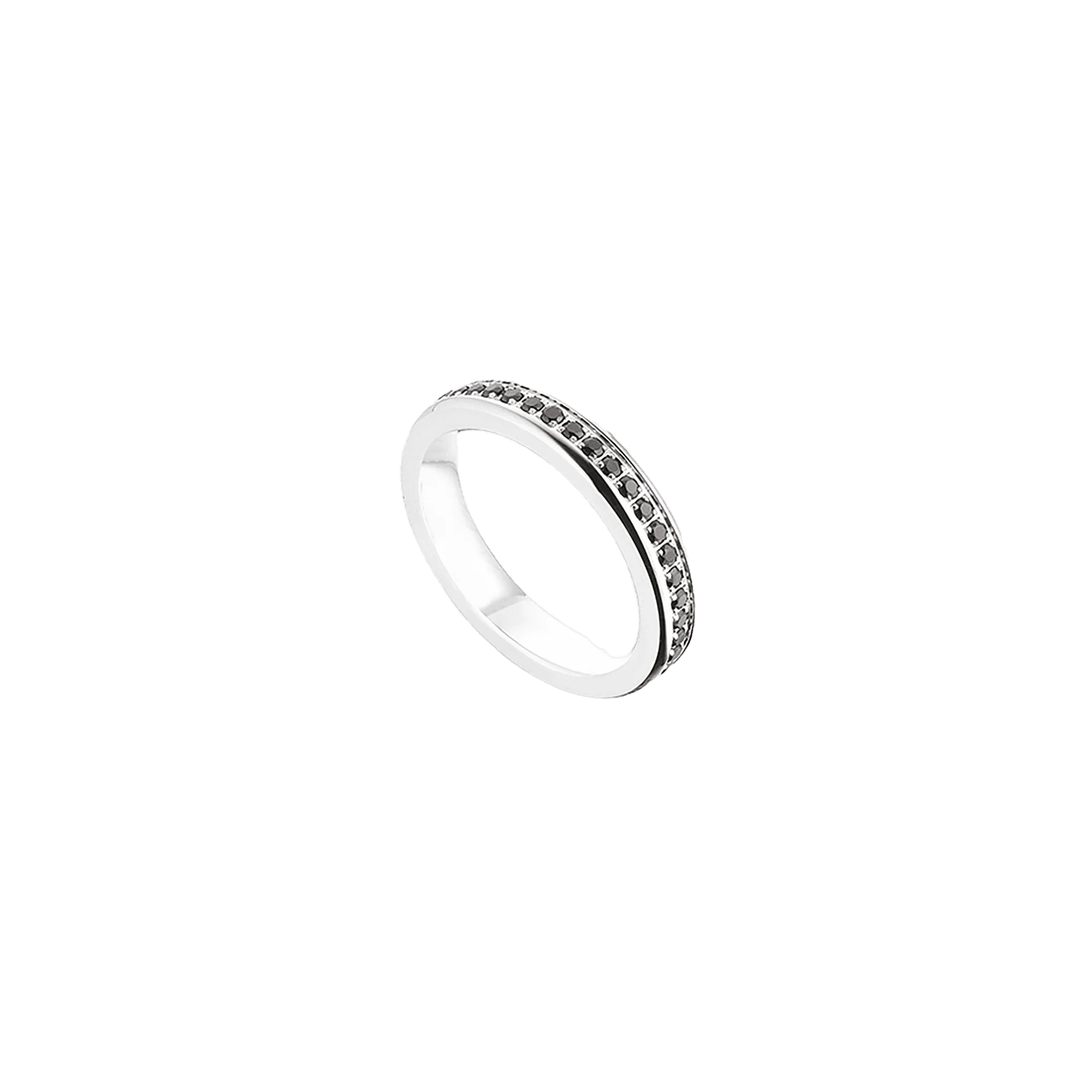 FEDINA DONNA E UOMO IN ACCIAIO CON CRISTALLI NERI—